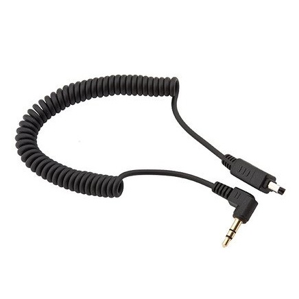 -Cable sincronizador espiral para cámaras Olympus con terminal 3.5 mm para conectar el disparador FlashWave III.